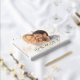 This wedding guestbook offers a photo frame that fills the front of the book and is accented with elegant gold foil script. Personalize with your names and wedding date.