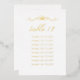 Create a beautiful gold foil table number sign with my original design. Add the table number and list the guests who will sit at that table. This is a simple way to create a guest seating chart. The design at the top with two intertwined hearts with radiating wisps create a romantic accent. I drew this design on my tablet. Add the table number for a sophisticated table number sign. On the back side is a faux gold and white table card which will add style to your table decor. This custom table number sign would be perfect for a wedding reception, an engagement party, a rehearsal dinner, or even a golden 50th wedding anniversary party. See my collection of matching items.
