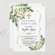 Elegant Gold Frame White Blooming Flowers Baptism Invitation