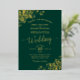 This beautiful wedding invitation features real foil printing on an emerald green background. The beautiful design has lacy script calligraphy with fancy floral filigree in the corners. Stylish, elegant, sophisticated, and chic, this invitation is fancy and glam.