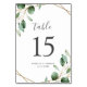 Elegant Gold Geometric Eucalyptus Greenery Wedding Table Number