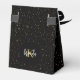 Gold glitter and sparkles on a black background. Customizable monogram and name in gold and white typography.