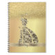 Elegant Gold Glitter Bokeh, Dress, Lace Notebook