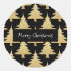 elegant gold glitter Christmas tree pattern black Classic Round Sticker
