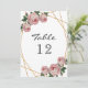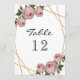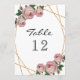 Elegant Gold Glitter Geo Pink Floral Table Number