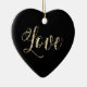* Energetically Enhanced Christmas Heart shaped ornament with an elegant modern popular Gold faux glitter lovely script / calligraphy with the word LOVE.