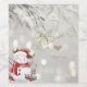 Elegant glitter faux gold heart and snowman on bokeh background.