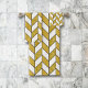This bath towel set features an elegant chevron design with a geometric herringbone pattern in white and faux gold glitter with black lines.