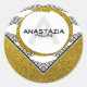 Serve up some goodies in a favour bag or seal the mail with this elegant sticker. This black and white zig zag striped pattern sets off the top of this sticker featuring a gold glitter calligraphy circle with name and initial letter monogram text over a gold glitter bottom. Fill in the template fields or click customize to select a typeface style, size, and colour you like.