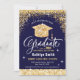 Gold Glitter Blue Elegant Graduation Party Invitation Card. Congrats the GRAD! Congratulations on their well-deserved success and celebrate them with this elegant invitation card. All the texts are pre-arranged for you to personalize easily and quickly with your own details.