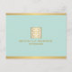 Coordinates with the Elegant Gold Greek Key on Mint Interior Designer Business Card Template by 1201AM. A faux metallic gold greek key emblem is combined with your name or business name for a chic logo on this designer postcard template. Set on a mint background for a vintage aesthetic. © 1201AM CREATIVE