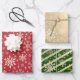 Elegant Gold Green Red Christmas Snowflake Pattern Wrapping Paper Sheet