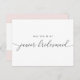 Custom-designed "Will You Be My Junior Bridesmaid" bridal party proposal card featuring elegant hand calligraphy on the front, pink colour block with gold heart design on the back.