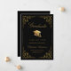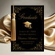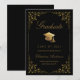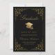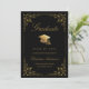 Send your family and friends this elegant graduation announcement card to wow them. This design features faux gold grad cap and script on a black background framed with a faux gold filigree botanical border. Personalize with your own details, name, school and year. Designed by Susan Coffey.