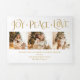 Elegant, minimal and modern "Joy + Peace + Love" timeless script graphic message in a hammered gold textured style with a three-photo template and four editable text fields on a clean white background.