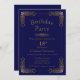 A customizable elegant ornate gold lace blue 18th birthday party invitation.