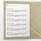 An elegant type treatment for your name or business name is centred on top of an organic pattern of a leaf in a faux gold effect on this professional tri-fold brochure. Update the customizable text to fit your brand, and personalize the details throughout the brochure for your own usage. These 5x7 brochures are the perfect size to display your price lists and menu of services, or describe your product line. A great marketing piece to hand out to potential clients to quickly introduce your business. Please contact the designer for help with special typesetting or layout variations. Art and design © 1201AM Design Studio | www.1201am.com