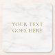 White Marble Elegant Gold Look Text Template Square Paper Coaster.