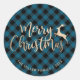Elegant Gold Merry Christmas Black & Blue Plaid Classic Round Sticker