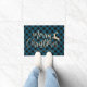 Elegant Gold Merry Christmas Black & Blue Plaid Doormat