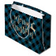 Elegant Gold Merry Christmas Black & Blue Plaid Large Gift Bag