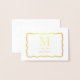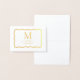Here's an elegant personalized note card that works for personnel correspondence, or even as a wedding thank you. The front has a fancy gold foil frame, with your monogram and text within it, also in gold foil. The monogram and text are separated by a line embellishment. All is placed on a white background, and the inside of the card is left blank for your use. Classy and timeless.