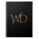 Elegant Gold Monogram Luxurious Typography Black notebook. A luxurious design featuring a gold double monogram/initials logo of your business initials overlayed with your business's name. Simple and bold! This versatile design is great for a variety of professions and businesses, from hair and make up to graphic designers.