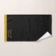 Personalized elegant monogram Gold serif first name and script last name, bathroom towel set with a gold edge border on black. Refresh your bathroom decor with a minimalist typographic style.