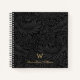 Elegant Gold Monogram Name Black Floral Pattern Notebook