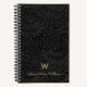 Elegant Gold Monogram Name Black Floral Pattern Notebook