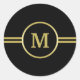 Elegant gold Monogram on black Classic Round Sticker