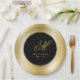 Elegant Gold Monogram Script Black Wedding Paper Plate