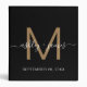 Chic wedding album or planner with your stylish monogram initial in gold and your names in white elegant handwritten script calligraphy on a black background. Simply add your names, monogram and wedding date. A beautiful wedding keepsake gift album for all your wedding photos and memories. Exclusively designed for you by Happy Dolphin Studio. We're happy to help you make your wedding the most beautiful day! If you need any help or matching products, please contact us through our store chat.