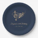 This editable elegant birthday paper plate features a wavy stave with music notes and a treble clef in faux gold on a blue background, complemented by modern script typography. Perfect for adult birthday parties, musical events and music lovers. Customize it with your own text and make use of the editing tool to adjust the font size and placement. Should you require any help with customization, please feel free to message us on Zazzle.