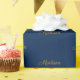 Elegant gold navy blue custom script name birthday wrapping paper