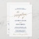 This elegant gold and navy calligraphy reception details invitation card is perfect for a simple wedding reception. The faux gold foil design features a minimalist card decorated with romantic and whimsical typography. Save paper by including the wedding details on the back of the invitation instead of on a separate insert card.