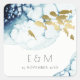 ELEGANT GOLD NAVY UNDERWATER FISH MONOGRAM WEDDING SQUARE STICKER