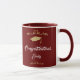 Red Elegant Golden Congratulations Graduate Graduation Mug. Graduation mug with graduation cap, trendy script and gold ornaments. Congratulations and the name of the graduate - personalize with your name.