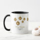 This beautifully designed Christmas mug features a minimalist white background adorned with soft, subtle snowflake patterns. The central artwork displays a collection of hanging golden baubles with delicate snowflake details, creating a festive and luxurious holiday feel. The design is completed with elegant gold typography that reads “Merry Christmas,” followed by customizable family text. With its black handle and rim, the mug offers a modern contrast that enhances its overall premium look. Perfect for gifting to loved ones or adding a festive touch to your holiday drinkware collection.
