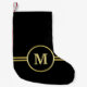 Elegant gold Personalized Monogram on black Small Christmas Stocking