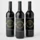 Elegant gold Personalized Monogram on black Wine Label