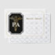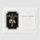 "PA" and a gold-toned caduceus on a black scalloped frame panel on left with your details on right, all surrounded by a gold tone double scalloped-edge frame on a clear background graduation party invitation design that can be personalized for physician's assistant school graduations. Composite design by Holiday Hearts Designs (rights reserved).