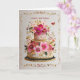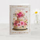 This stunning card features an intricately decorated birthday cake adorned with vivid pink florals, shimmering gold accents, and delicate botanical embellishments. Surrounded by an ornate gold border, the design feels richly crafted — a true statement piece for someone who loves beauty, art, and indulgent celebration.