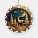 This customizable round ceramic reindeer ornament features an elegant White & gold coloured frame that encircles a gold festive design. The background showcases a serene Christmas snowy night scene, with a dark blue sky filled with snowflakes. Below, a picturesque scene of a winter snowy landscape with trees and snow. Gold deer with antlers gracefully adds a touch of magic and Xmas holiday spirit. The double-sided design ensures that no matter how the ornament turns, it always looks festive and complete. 🦌🎄