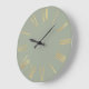 This elegant and modern wall clock features a beautiful sage green coloured background. The hours are printed in a gold Roman numeral design.