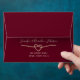 Simple, elegant, romantic burgundy sage green 5x7 envelope for wedding invitations with return address and gold rope heart.