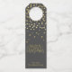 Elegant Gold Script & Confetti Black Christmas Bottle Tag