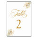 Elegant Gold Script Floral Wedding Table Number Set. Look no further for your perfect floral wedding table numbers to make your special day shine. Your wedding table numbers give guests a glimpse of your wedding theme, so make it count. You already have enough on your plate. No need to make any changes or edits to these table numbers. Just put them in your cart and you are all set to go. Get yours today!