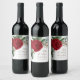 Elegant Gold Script Red Floral Mr & Mrs Wine Label