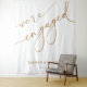 Elegant Gold Script We're Engaged Engagement Party Backdrop